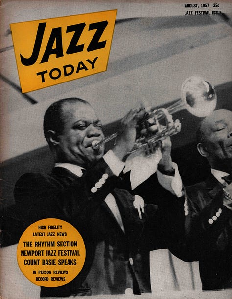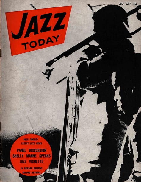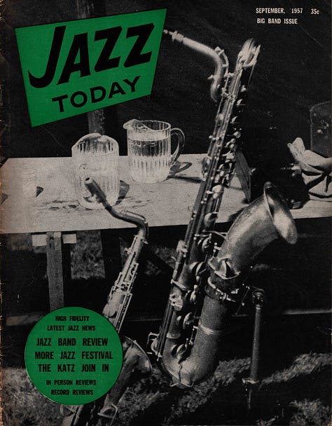 Jazz Today was founded by Metronome’s (another magazine) publishers Ned and John W. Bitner to be a magazine purely focused on Jazz editorial content during a time when Metronome was branching out and including other genres in their magazine. Bill Coss — the editor of Metronome — also filled the same role for this unfortunately short-lived publication, with only 13 issues spanning from October 1956 through November 1957. I chose Jazz Today as the first feature since I have a full set.