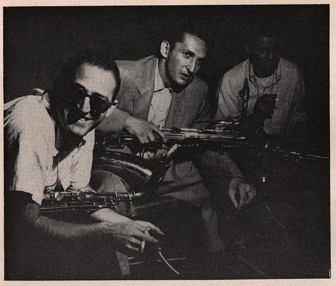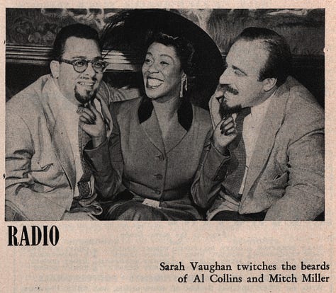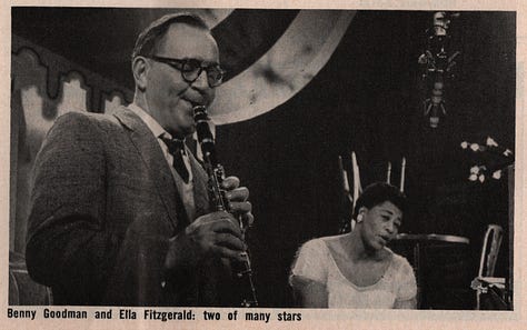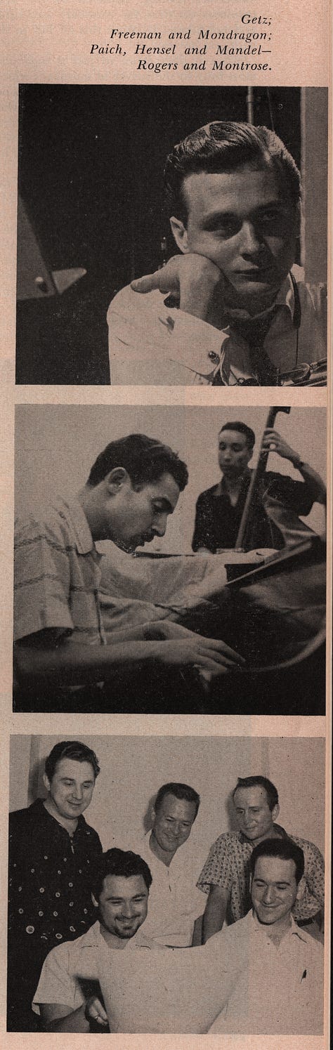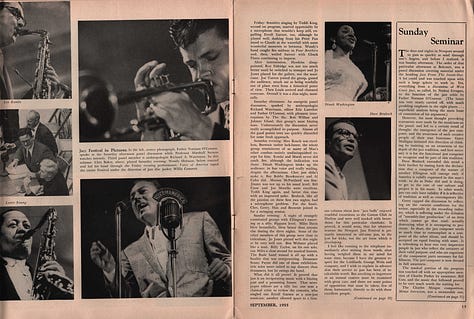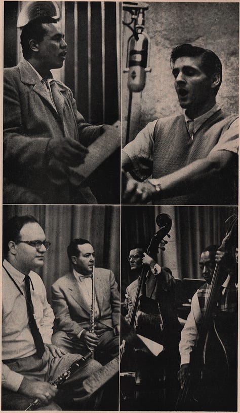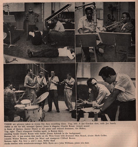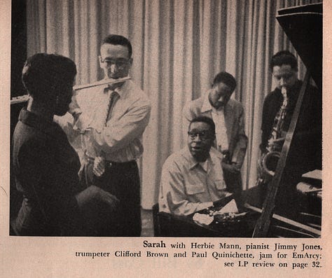 One of my favorite images I found in these issues is one of Sarah Vaughan, Clifford Brown, and the rest of the band recording Sarah’s legendary EmArcy self-titled release — one that was her own favorite recording and has been inducted into the Grammy hall of fame! What a wonderful peek into the studio for such a pivotal recording!