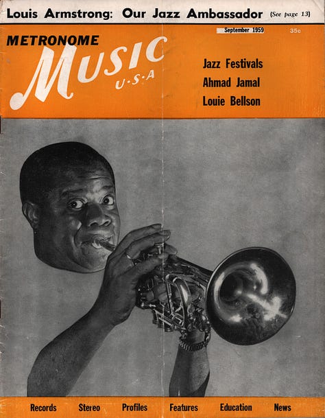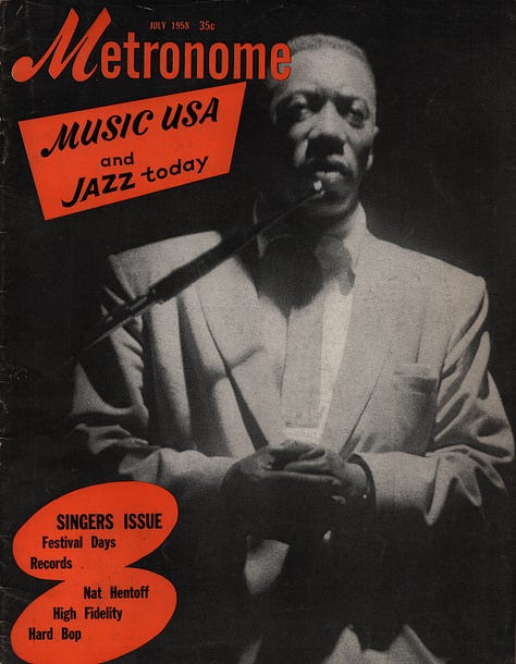 I do not have a complete set of these (they tend to be a bit tough to track down and fairly expensive) but I have about 60 issues overall, mostly spanning the 1950s and 60s. I selected a spread of covers to highlight that also show quite a few different cover layouts and fonts (including the brief name change to Music USA around the time when Jazz Today was in production.