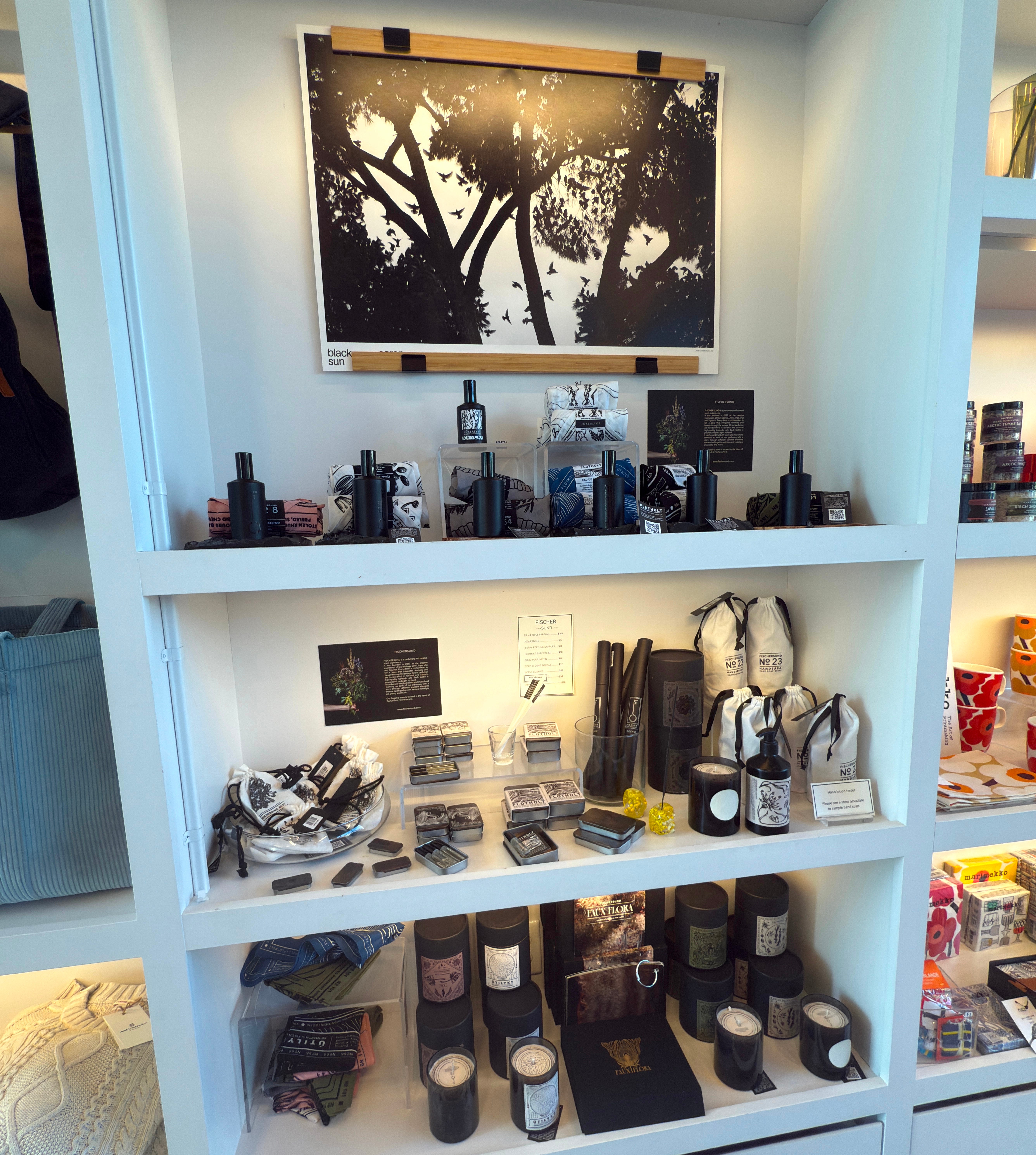 Their gift shop features an entire shelf dedicated to Fischersund and is only a handful of physical locations in the country where their fragrances can be found in person. Everything from their fragrances, to bandanas, to incense, candles, soap, samples, and more. I currently own No. 101, and there are a few others I am interested in as well.