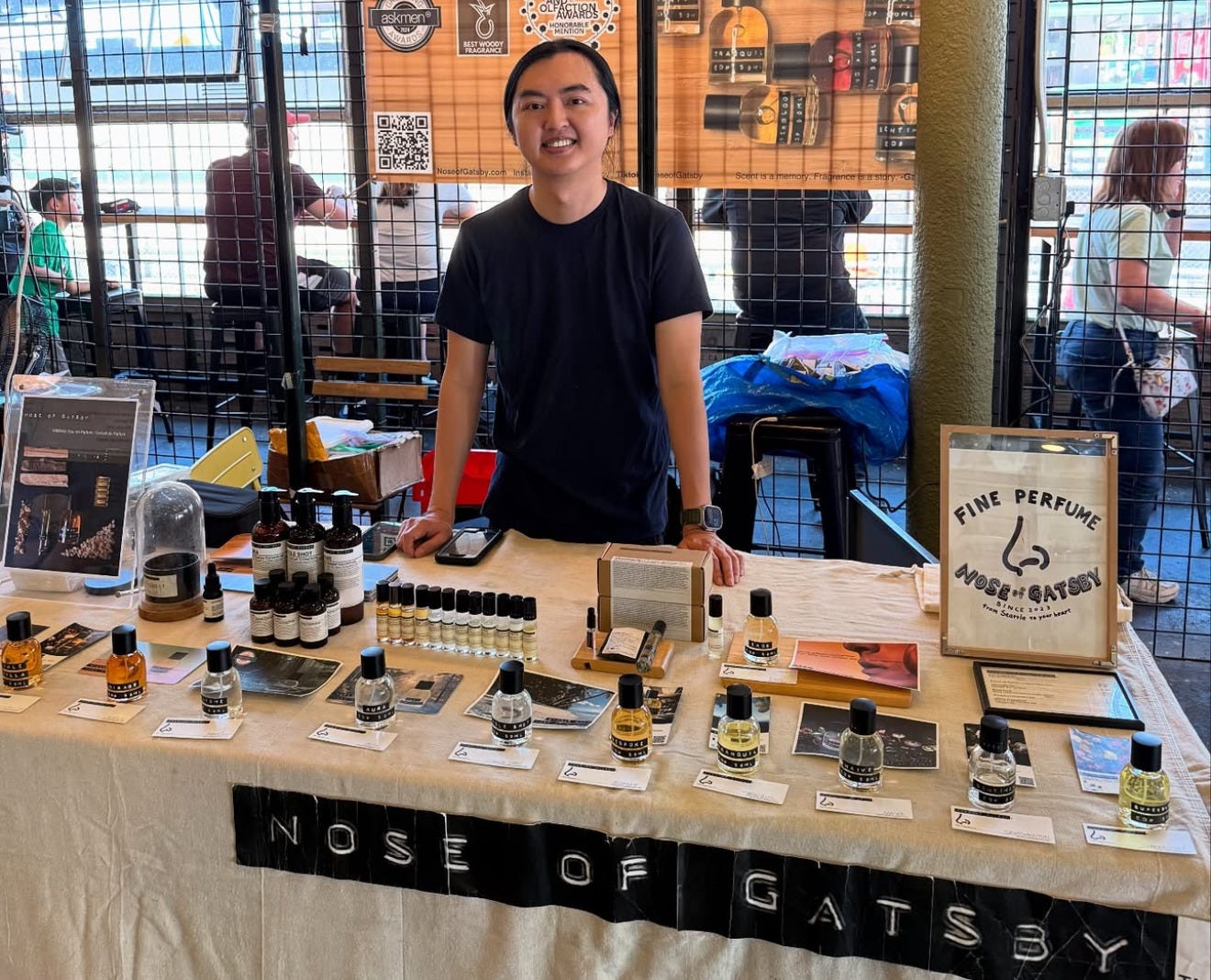 Due to some excellent timing, I had the opportunity to stop by Pike Place Market and visit Gatsby at their guest booth at the market on their final day. I had a wonderful time chatting with Gatsby for some time about their fragrances, history, fragrance in general, etc.